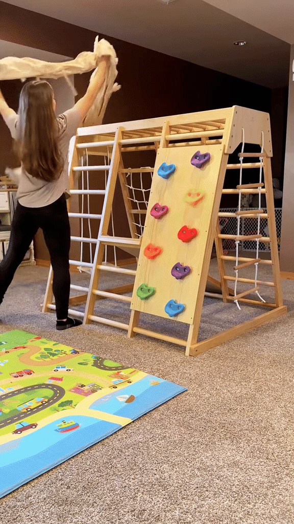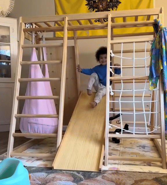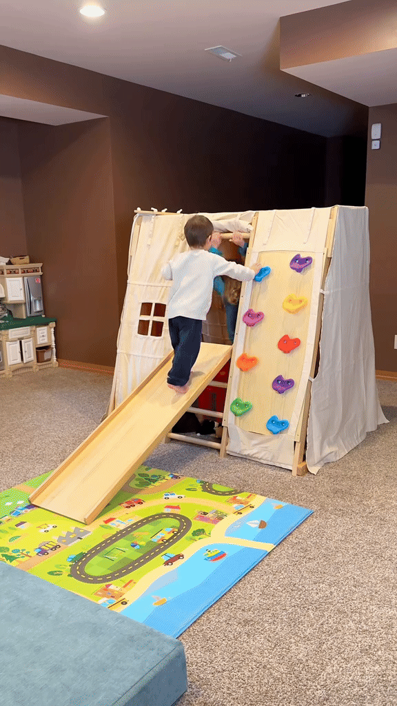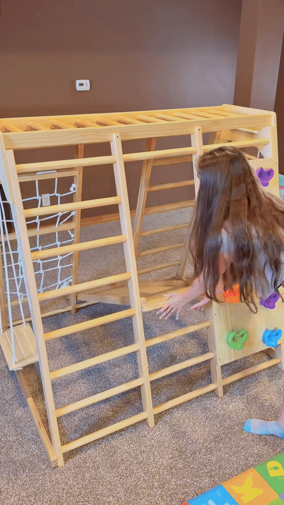My daughters love this, they play with it every single day; at first it took me a minute to trust the process and let them climb without panicking but is just Dad's love. If your kid is wild and you don't have rugs you might want to invest in some foams to cover the floor in case of your children falling.